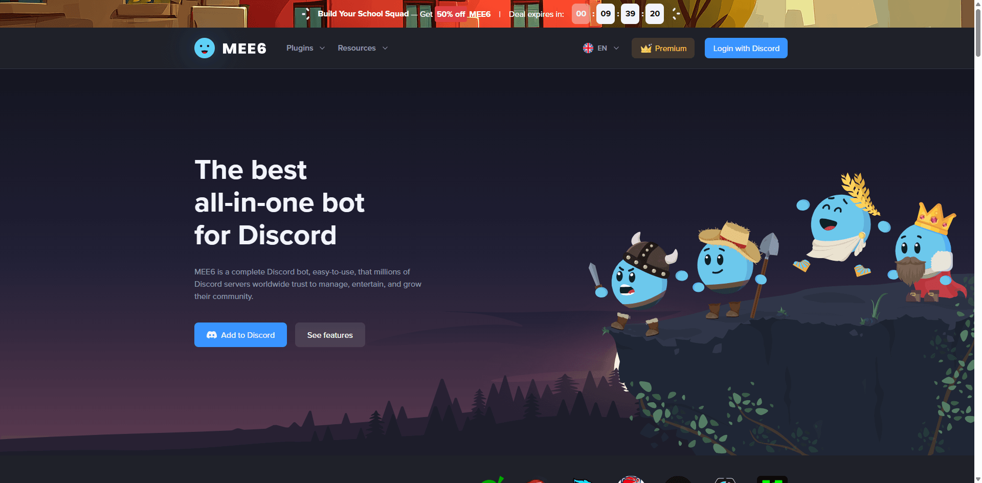 MEE6 is famous for moderation and leveling. The music plugin exists but requires premium, which is $11.99/month.