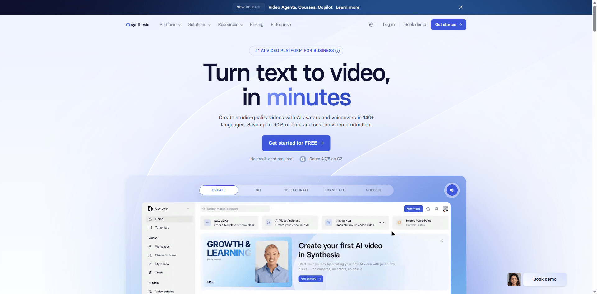 Synthesia | $29/month | Demo | 140+ | 130+ | AI avatars + voice | ⭐⭐⭐⭐ |
