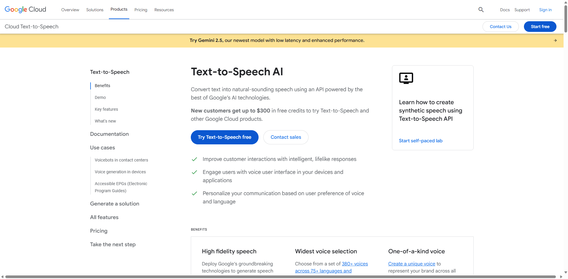 Good documentation: Amazon Polly, Google Cloud TTS, Microsoft Azure (developer-focused)